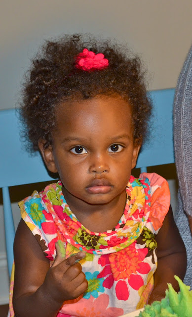 Unfortunately, not everyone was ecstatic.  Although she had played with the play-dough before, Lula seemed concerned.  She didn't get upset.  She just spent most of the time contemplating how to get the stuff off her fingers.  Just like when you put tape on a cat's paws . . . not that I've ever done that.